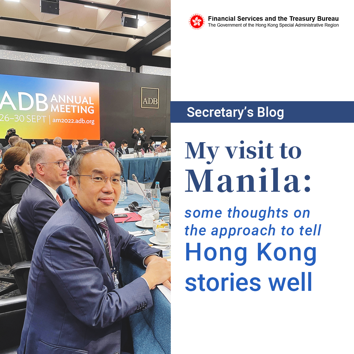 Last week, I visited Manila, the Philippines to attend the annual meeting of the Asian Development Bank (ADB) as a representative of Hong Kong to discuss with participants from around the world about the ways to promote the post-pandemic development of green economy. In the face of numerous issues such as global pandemic, climate warming, supply chain constraints and elevating inflation, ADB is determined to carry out reforms on its energy policies, capital investment and organisational structure, with a view to developing a new model for sustainable development in Asia in collaboration with its members. When speaking at the annual meeting and interacting with individual participants, I took the opportunity to promote Hong Kong as an international financial centre by introducing the full spectrum of our professional services (covering offshore Renminbi (RMB) finance, green and sustainable financing, fintech solutions and risk management tools), and to encourage ADB and its partners to tap into the new opportunities in Hong Kong. During my visit, I also met with the government officials of the Philippines, including the Senate President as well as representatives of the Department of Finance, the Bangko Sentral ng Pilipinas and the Department of Foreign Affairs, to explore future collaboration between the two places. I have particularly deep feelings about this visit, as it coincided with the launch of the new “0+3” anti-epidemic measure in Hong Kong to strengthen our connection with the rest of the world. I have also gradually devised my own approach to tell Hong Kong stories well, which I am going to share with you.