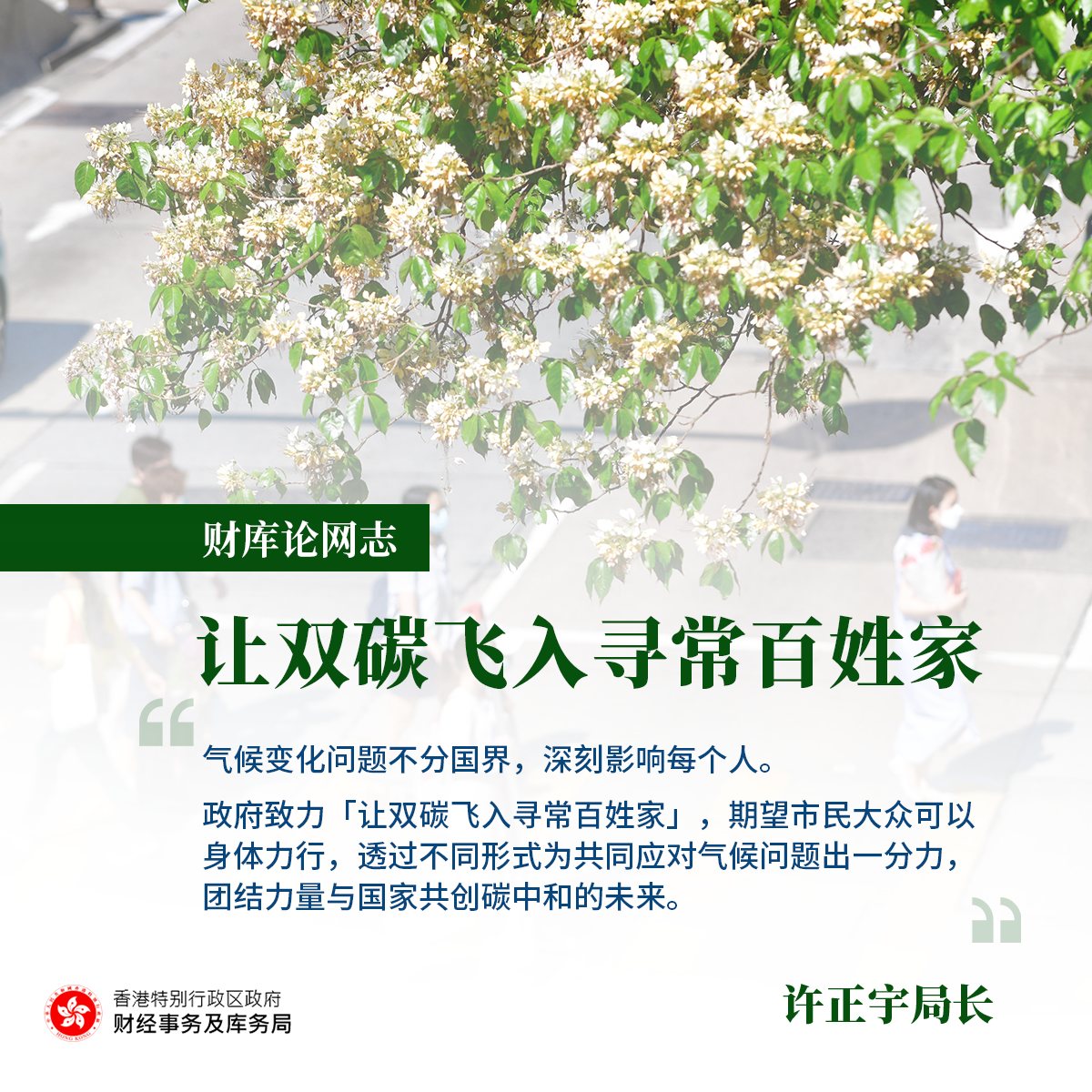 气候变化问题不分国界,深刻影响每个人。政府致力「让双碳飞入寻常百姓家」,期望市民大众可以身体力行,透过不同形式为共同应对气候问题出一分力,团结力量与国家共创碳中和的未来。