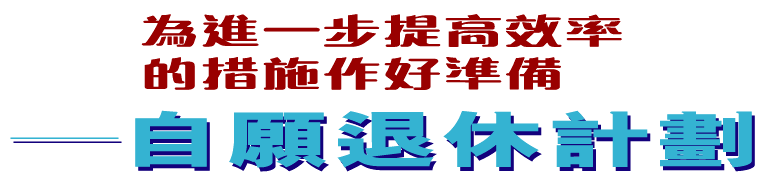 在去年九月出版的上一期通訊中,我們報告已推出一次過的自願退休計劃,讓已出現或預期出現人手過剩的59個指定職系的合資格公務員申請。在過去三個月,我們已完成處理有關申請的工作,而所有申請人都已於二零零零年十二月十二日獲知申請結果。