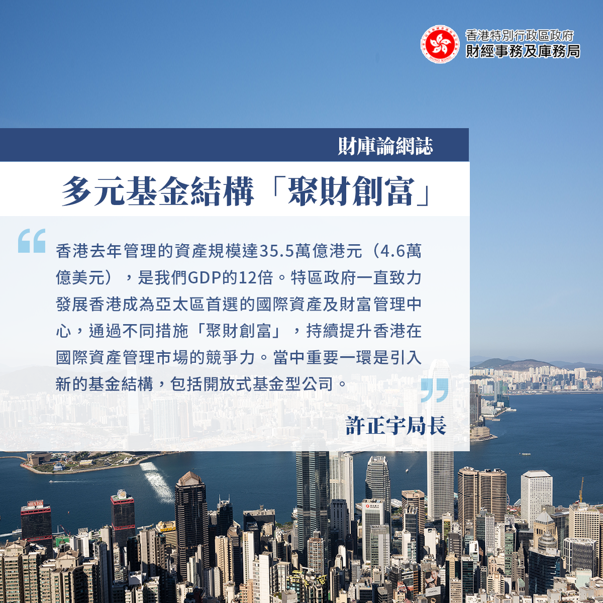 香港去年管理的資產規模達35.5萬億港元(4.6萬億美元),是我們GDP的12倍。特區政府一直致力發展香港成為亞太區首選的國際資產及財富管理中心,通過不同措施「聚財創富」,持續提升香港在國際資產管理市場的競爭力。當中重要一環是引入新的基金結構,包括開放式基金型公司(open-ended fund company,OFC)。